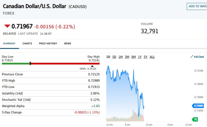 周五早盘,加元汇率报1美元兑1.389加元(即1加元约合71.96美分),为12月5日以来的最弱水平。