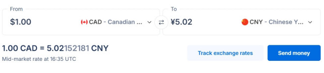与此同时,加元兑人民币汇率跌至1加元兑5.02人民币元。
