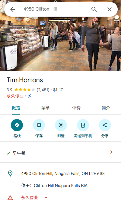这家Tim Hortons堪称“顶流”,位于尼亚加拉瀑布最热闹最核心的商业娱乐区——Clifton Hill。在旺季,每天都会有大批游客经过这家分店,不远处就是火爆的尼亚加拉摩天轮。