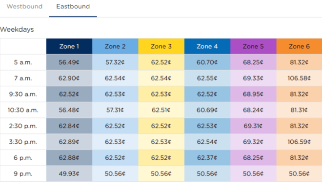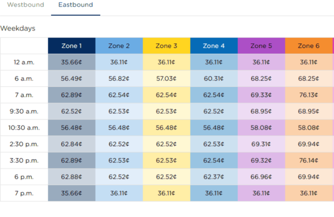 Highway 407在此前首次公布新费率时的一份新闻稿中表示,通行费在早晚高峰期间达到峰值,因为这是Highway 407 ETR最繁忙的时段。