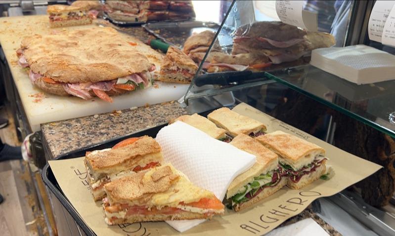 在地特色饮食,还可以卖到出版传记、注册商标。阿尔盖罗海边有家创立于1971年的传奇小吃店「Il Milese」,独门制作一种只在该店吃得到的「萨丁尼亚夹馅佛卡夏」。用两片长达60公分的天然发酵厚面包,夹入鲔鱼、切碎水煮蛋、鳀鱼、蔬菜、火腿等内馅,再淋上店家「秘密酱汁」,之后切成小块状贩售。