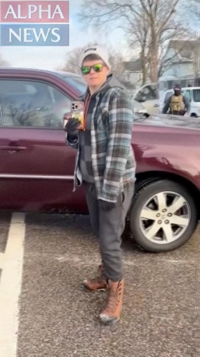 白宫9日公布ICE探员用手机拍摄的影片,图中站在车外,用手机拍摄影像的是古德的妻子。(路透)