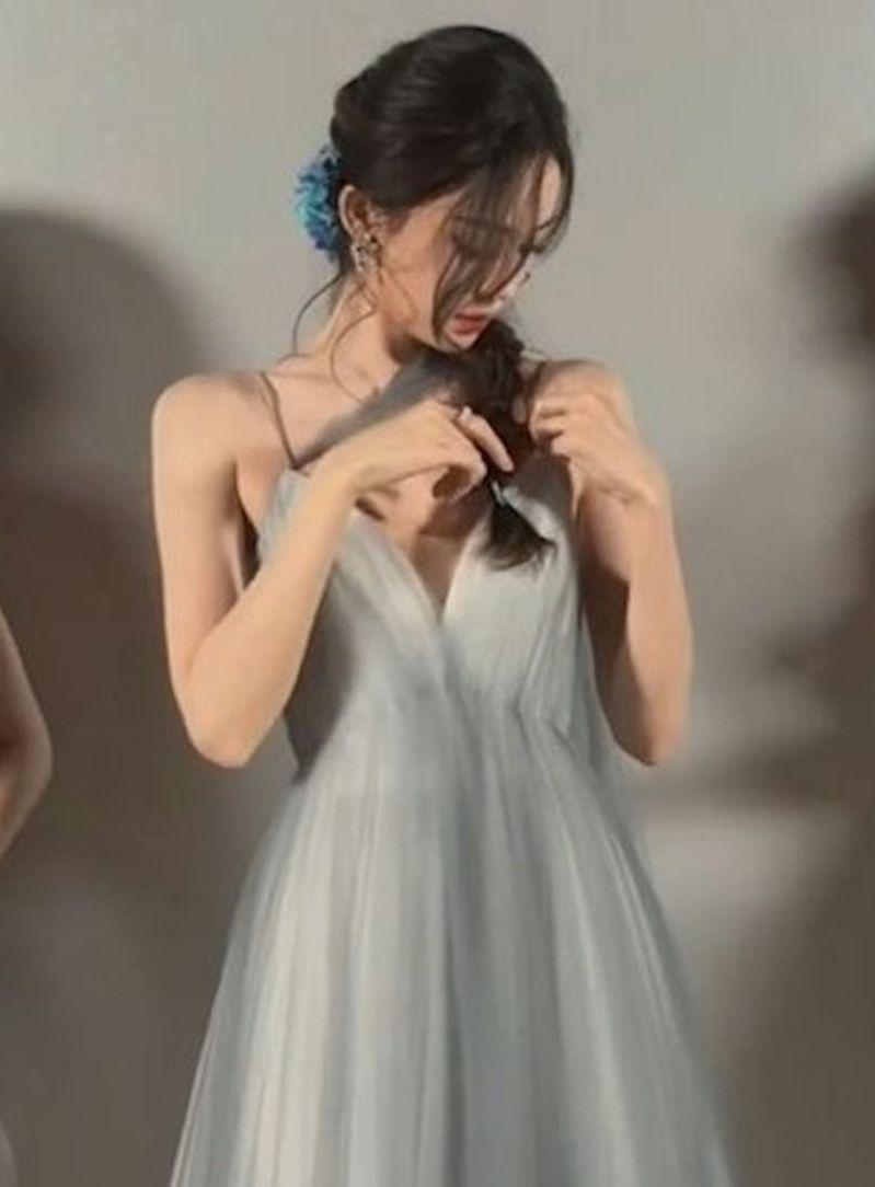 从网上曝光的影片可见,身穿灰蓝色薄纱低胸长裙的娜扎仙气十足。但在台上跳舞时,她左侧裙上的细肩带突然断裂,她及时发现并火速地用头发遮挡再做调整,站在一旁的其他女演员亦立刻上前遮挡。