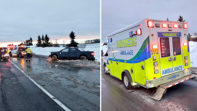 周五,一辆皮卡在Innisfil的400号高速公路发生碰撞后被从路边沟渠中拖出。目击者告诉警方,该车辆在撞上一辆救护车前被看到行驶异常。