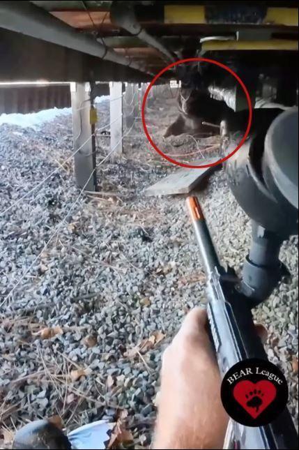 6日,志工携带招牌装备–填充植物油的漆弹枪,钻入屋下空间作业。创办人兼首席执行官布莱恩(Ann Bryant)表示,视情况朝熊只后方或臀部射击,目的并非伤害,而是制造刺激迫使牠离开。熊联盟在脸书(Facebook)公布画面显示,志工一边射击、一边高喊「快走、快走」,成功将熊赶到出口。