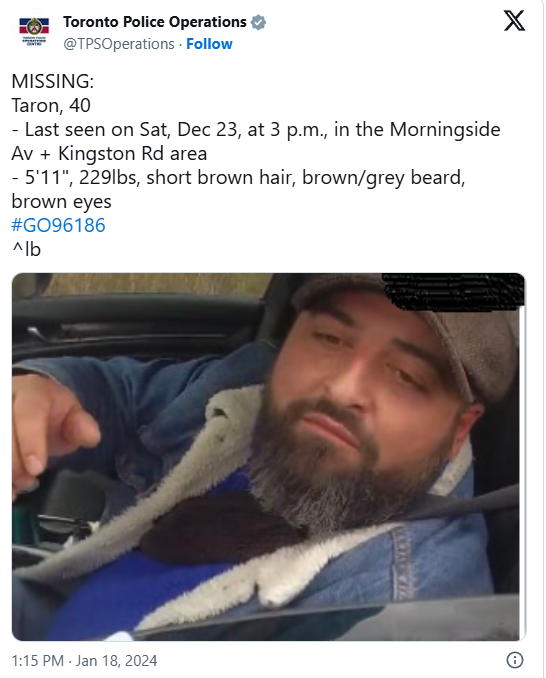 Stepanyan最后一次被人见到是在2023年12月23日,地点位于士嘉堡West Hill地区,靠近Morningside Avenue和Kingston Road。