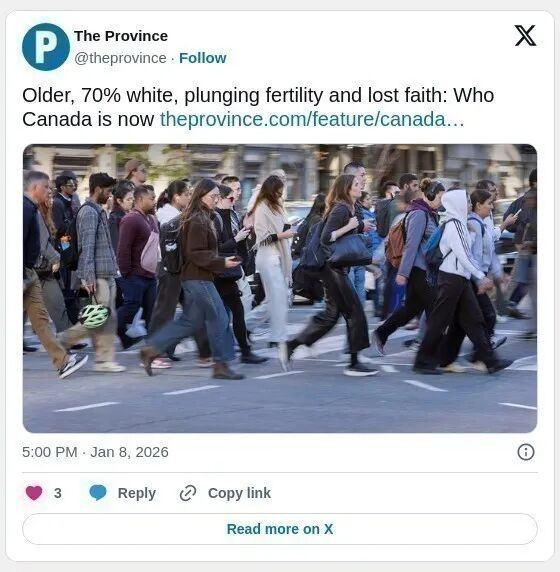 加拿大最新人口与社会结构数据勾勒出一个前所未有多元、快速变化、并面临深刻人口挑战的国家图景:老龄化、70%白人、生育率暴跌、信仰丧失。