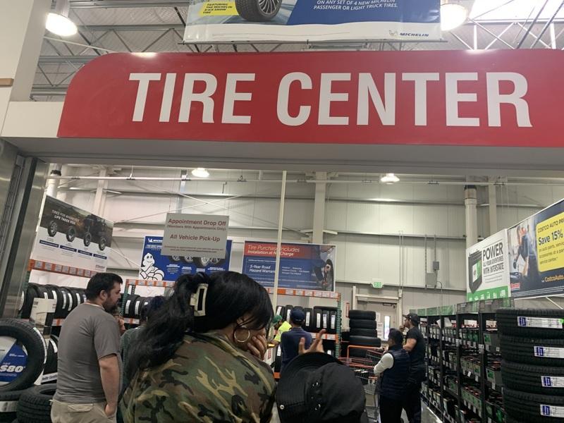 Susan说,好市多通过短信通知她某日下午来安装,她到达蒙特利公园市门店的轮胎中心时直接吓傻,轮胎中心附近停车位一位难求,车子绕很多圈都没有车位,本来专属轮胎服务停车区已满位,车顶上都放着号码牌(即为轮胎中心排队办理业务的车辆)。她好不容易找到相对离轮胎中心较近的位置停好车,就去柜台登记。柜台前也是大排长龙,店员解释,过节期间大家轮胎需求较多,等候时间会长。