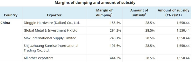 CBSA强调,倾销幅度并不等同于最终征收的反倾销税率,具体税额仍取决于后续裁决结果。
