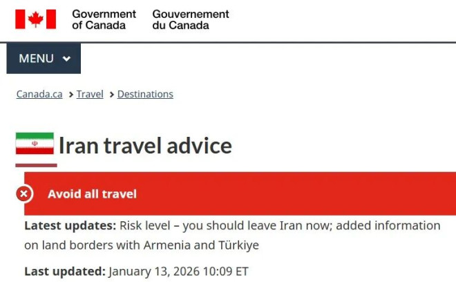 随着伊朗全国范围内抗议活动升级,加拿大全球事务部(Global Affairs Canada, GAC)于今天周二更新了旅行警示,强烈敦促在伊朗的加拿大公民“立即离开伊朗”。