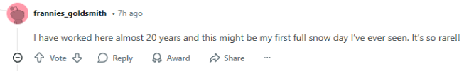 “我在这里工作快20年了,这可能是我见过的第一个完整的snow day。真是太罕见了!”