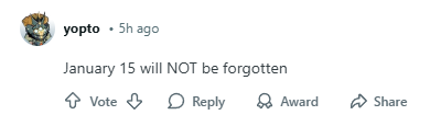 “1月15日,永远铭记。”