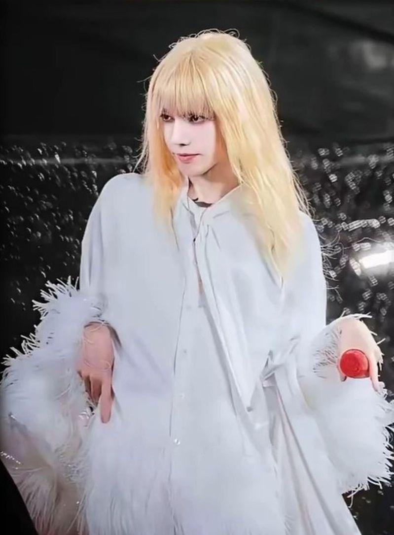从网上流出的照片可见,华晨宇不只戴起金色长假发,更穿起低领裙装,细节设计包括钻石流苏、蕾丝、亮片等女装元素,配饰上也不乏五彩缤纷项链和大红色耳环,营造出「雌雄莫辨」的视觉效果。