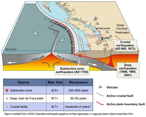 历史记录显示,上一次该地区的特大地震发生在1700年1月26日,震级约为9.0级,并引发毁灭性海啸,30分钟内冲毁了BC省的帕切纳湾村庄,没有幸存者。