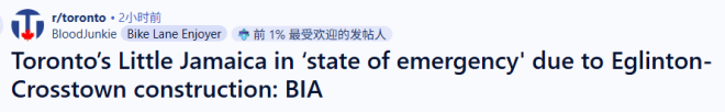 多伦多“小牙买加”社区商业促进会(BIA)表示,受附近Eglinton-Crosstown轻轨线长达16年施工的影响,当地已有数百家商户遭受严重经济损失,甚至被迫关门。