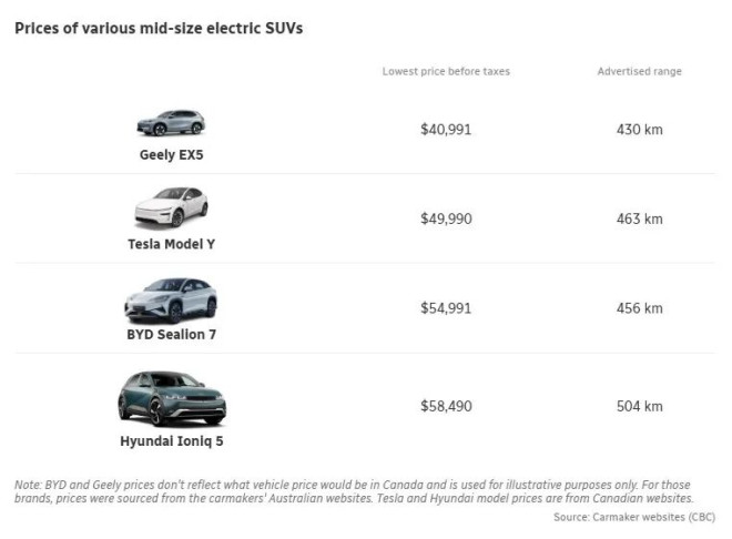 虽然具体价格取决于品牌和车型,但业内普遍认为,中国电动车的售价,可能比目前加拿大市场上同级别、同续航的车型便宜1万到1.5万加元。