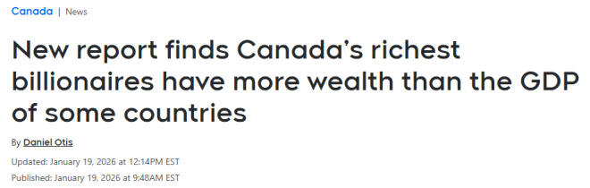 根据乐施会(Oxfam)最新发布的一份报告,2025年加拿大以及全球亿万富豪(billionaires,净资产达到10亿美元以上)的财富都创下了历史新高。